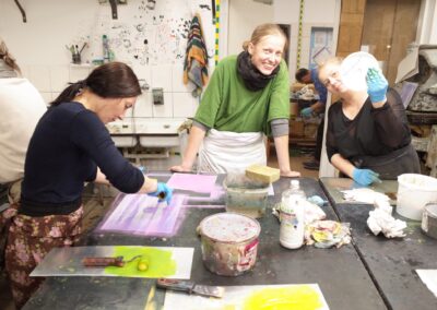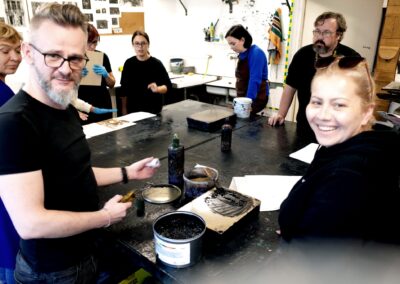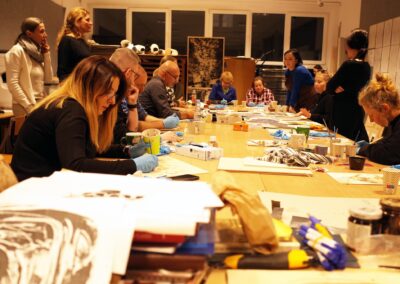 Úvodní, mentoringovou a praktickou část workshopu vedly zkušené grafické umělkyně Dr. Kamila Bednarska a paní Julia Rut, M.A. – obě působící na Filozofické fakultě Univerzity v Rzeszówě. V rámci harmonogramu workshopu byla také prohlídka ateliérů a prostor školy v budově paláce a velmi zajímavá exkurze do tamního pravoslavného kláštera a muzea ikon.